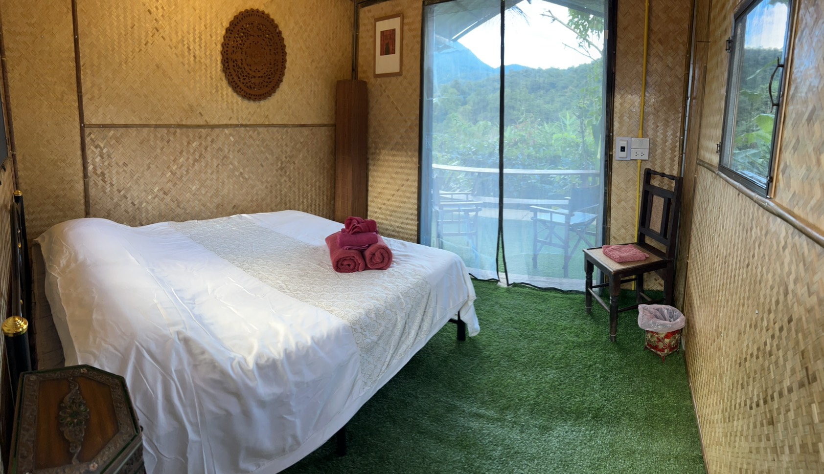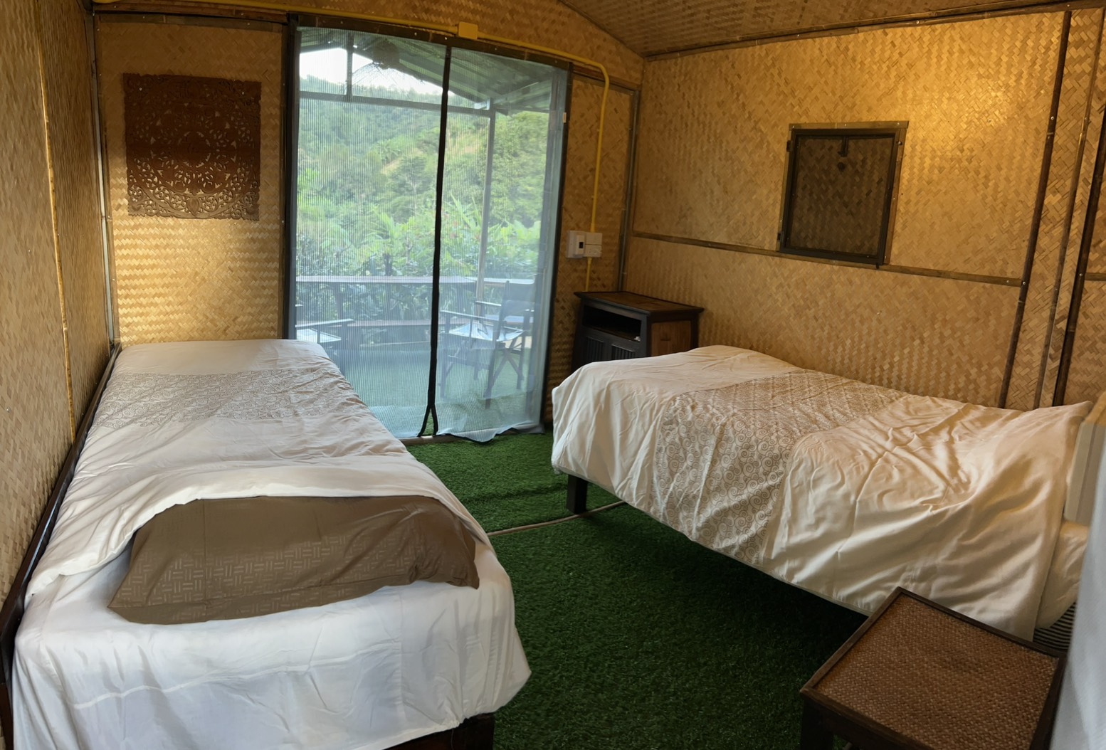 Deze 2 overnachtingen zijn in een bamboe bungalow bovenop een berg met een prachtig uitzicht vanuit je accommodatie. Er is een badkamer met Europese toilet en douche met warm water. In de bungalow is een bed met donsdeken, handdoeken, zeep en shampo zijn voorzien.